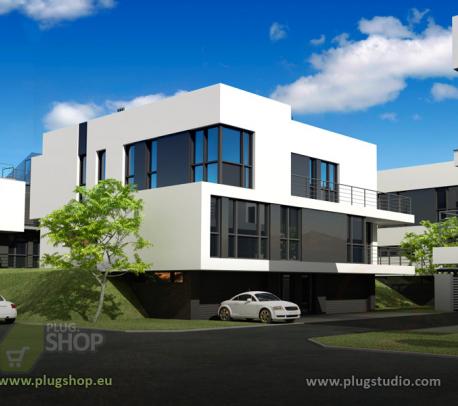 Nietypowy projekt typowy przeznaczony głownie dla deweloperów. Pozwala na intensywną zabudowę jednorodzinną w funkcjonalności zabudowy wielorodzinnej. To jeden z serii budynków DEV. Mieszkania typu open space 65-120m2