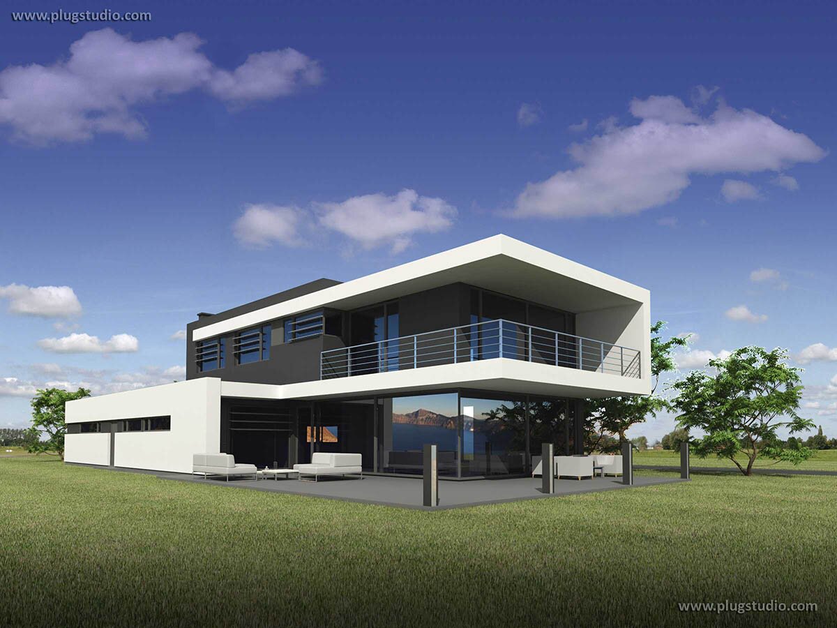 Projekt nowoczesnego budynku jednorodzinnego z garażem na dwa stanowiska. Dwie kondygnacje, płaski dach, wygodne i użytkowe wnętrze.