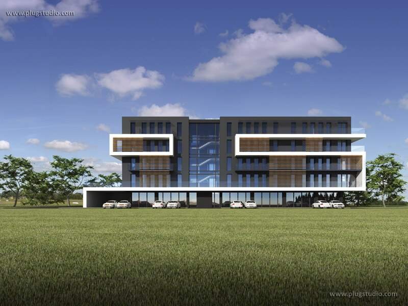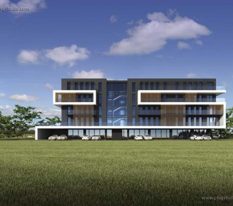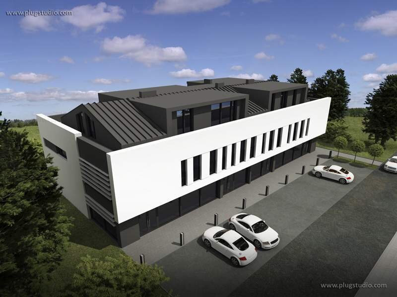 Projekt nowoczesnego budynku wielorodzinnego. Na parterze zaprojektowano część usługową, natomiast na piętrze i poddaszu - mieszkania. Mieszkania na piętrze mają od 40 do 60m2 i są zaprojektowane w sposób pozwalający na ich dowolny podział. Natomaist na poddaszu przewidziane są dwa większe mieszkania po 77m2 i 110 m2.