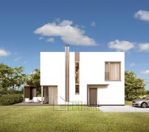 Projekt nowoczesnego budynku jednorodzinnego z garażem na dwa stanowiska. Dwie