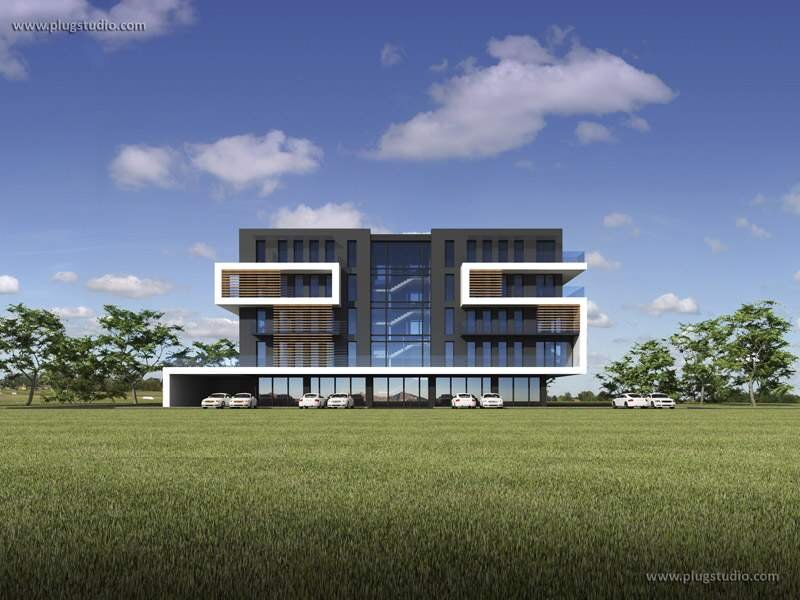 Projekt czteropiętrowego budynku usługowego serii BS. Zaprojektowany w sposób,