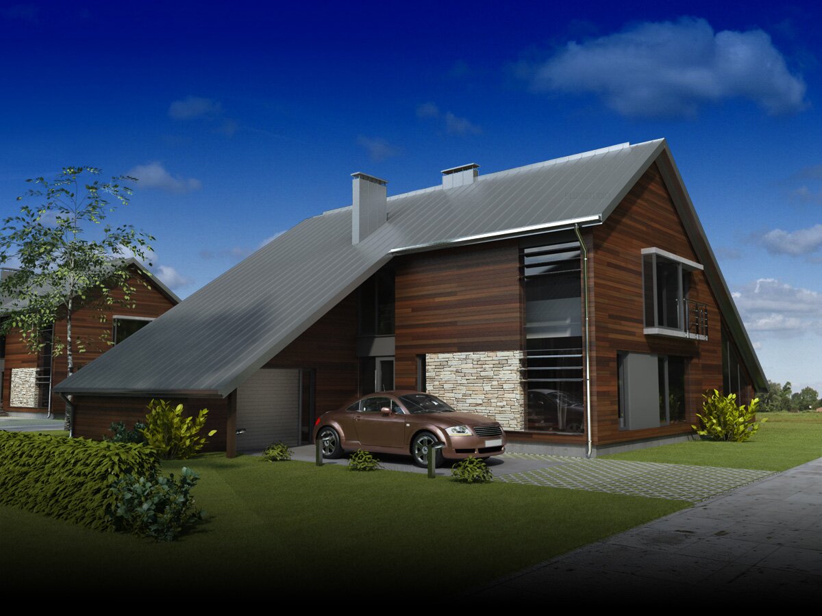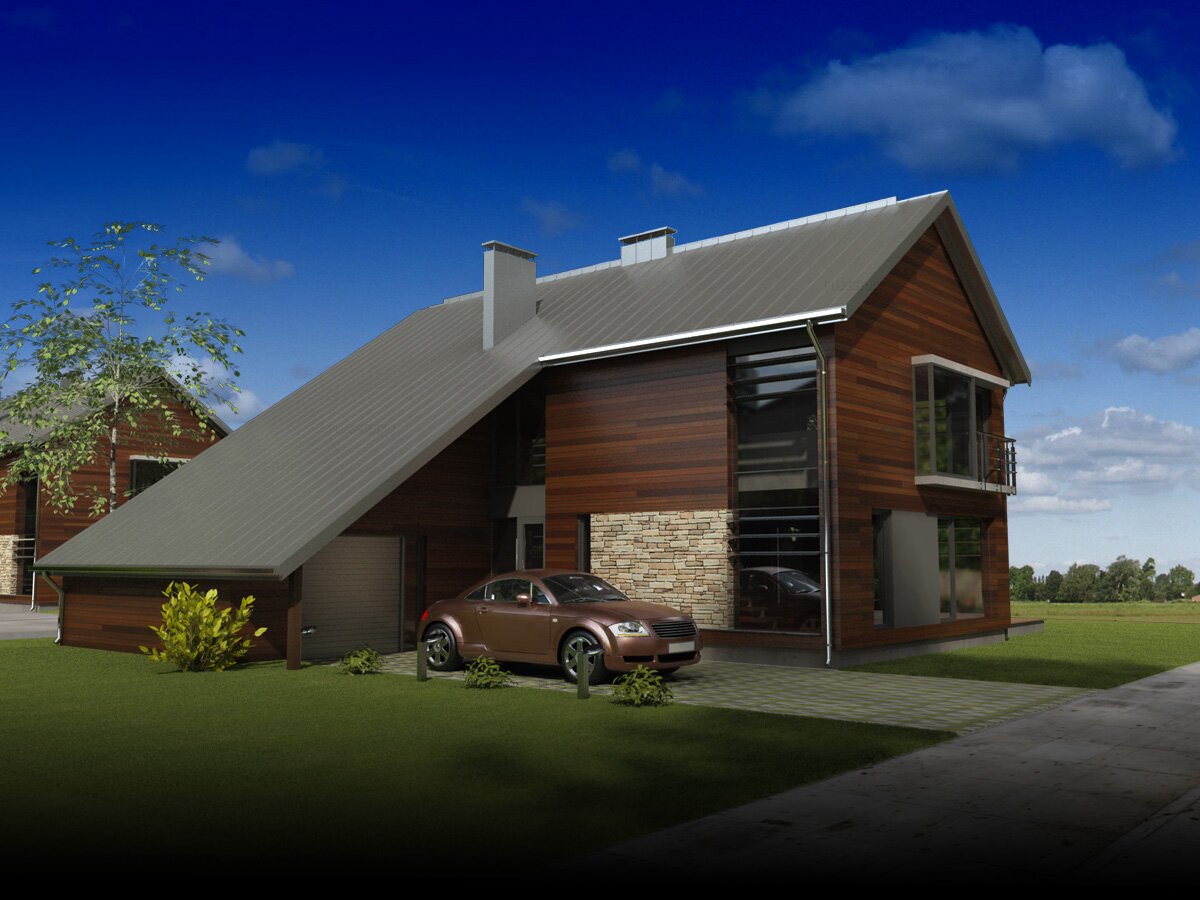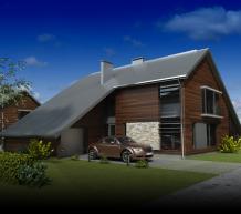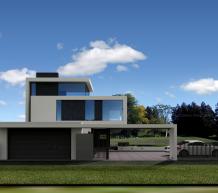 Projekt nowoczesnego domu jednorodzinnego ze spadzistym dachem.