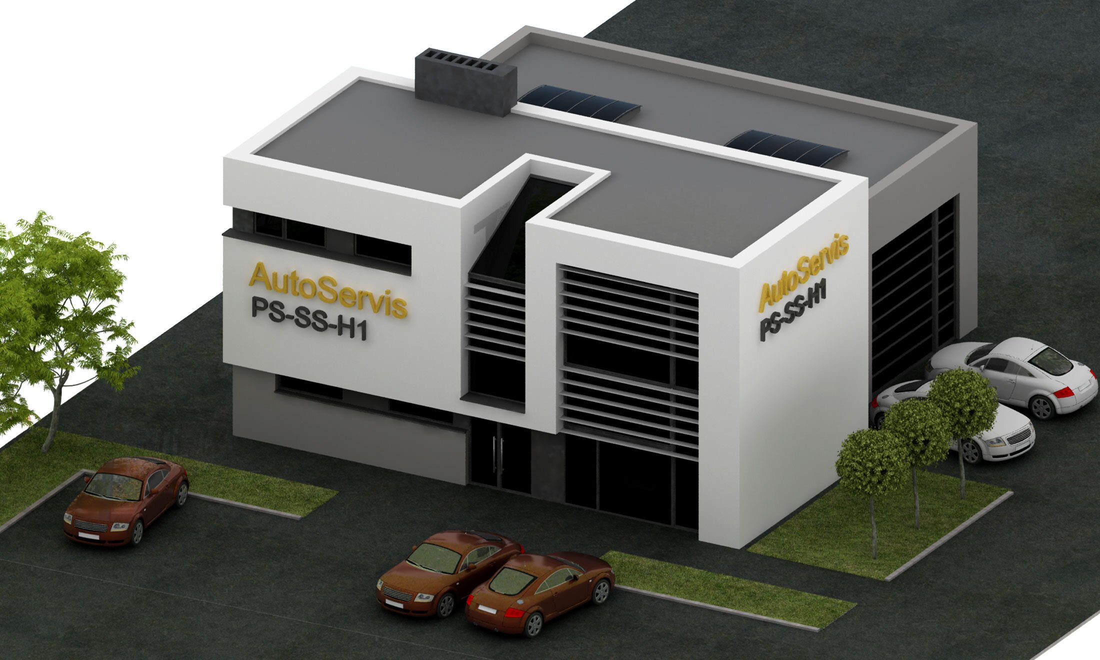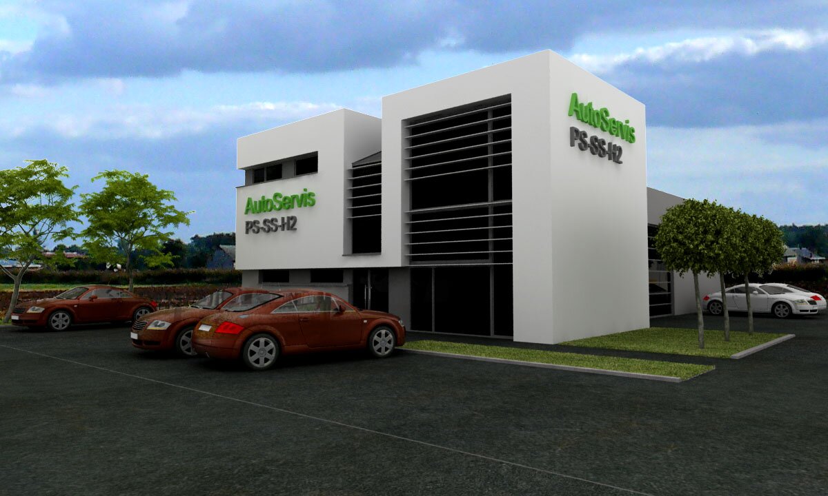Auto serwis na 4-6 stanowisk oraz część mieszkalno-usługowa.