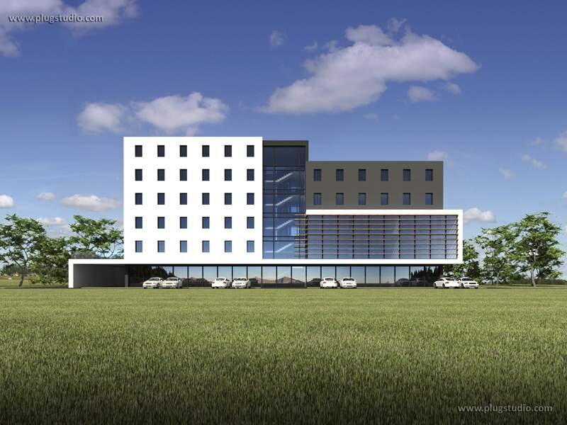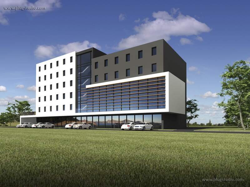 Projekt nowoczesnego hotelu serii DH. Wewnątrz przestrzeń, którą można podzielić na wiele sposobów. W zależności od potrzeb klienta można wydzielić pomieszczenia o różnej wielkości. Budynek posiada opcję garażu podziemnego. Dostępne inne wersje, różniące się elewacją oraz wysokością i szarokością budynków.