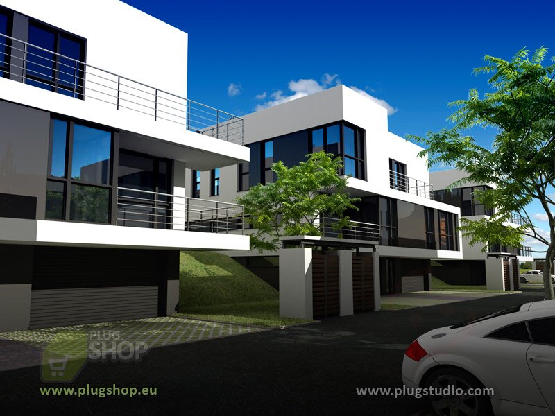 DEV-V1-C+D budynek typu bliźniak, 4 mieszkania eco nowoczesny płaski dach