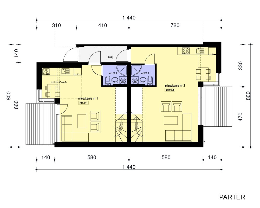 Budynek stanowi zewnętrzny moduł w zabudowie szeregowej serii PS-LO. Dwa mieszkania 71,97m2 i 79,28m2. To oferta dla deweloperów pozwalająca na dostosowanie projektu do programu inwestycji. Zainteresowanych prosimy o kontakt telefoniczny. Projekt wyłącznie na zamówienie indywidualne.