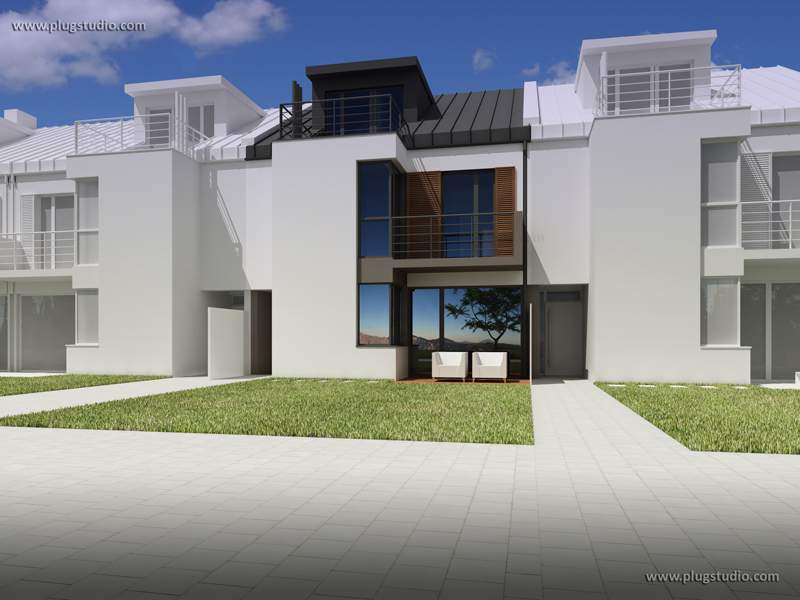 Budynek stanowi wewnętrzny moduł w zabudowie szeregowej serii PS-LO. Dwa mieszkania 92,13m2 i 99,44m2. Możliwość dopasowania różnych wariantów w zależności od zestawienia modułów oraz odpowiednich rozwiązań dla każdej inwestycji.