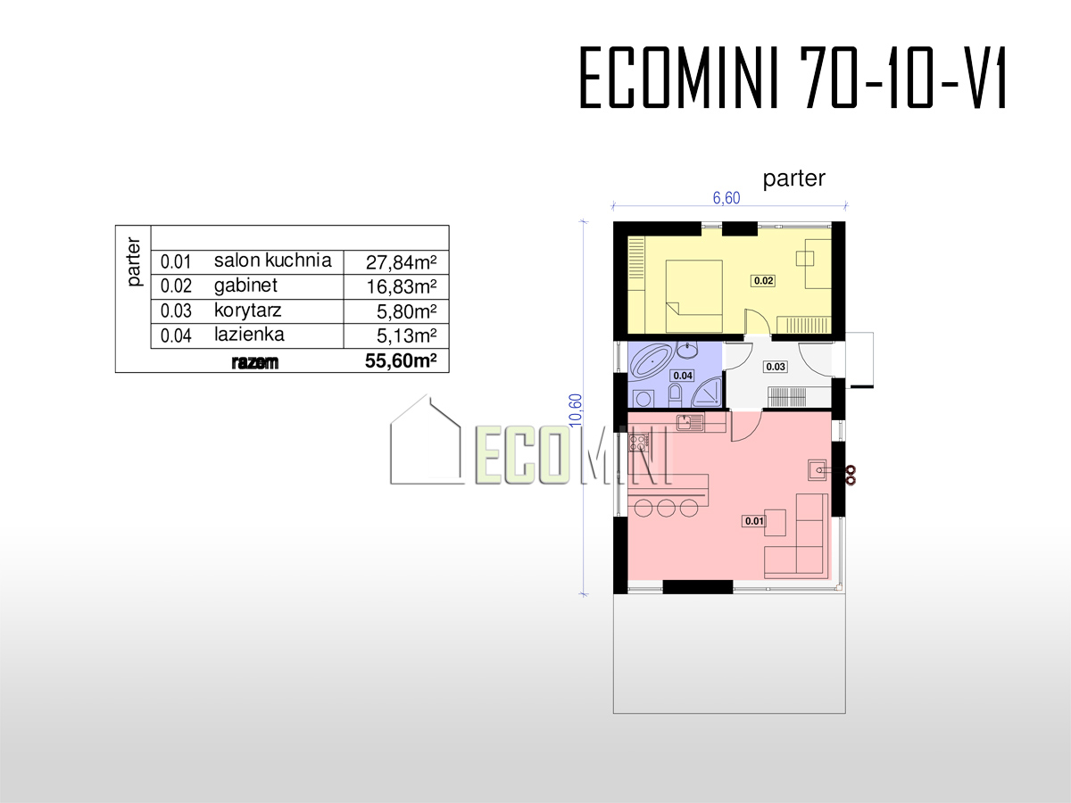 Budynek dostępny jest w różnych wersjach wykończenia oraz układu funkcjonalnego w środku.