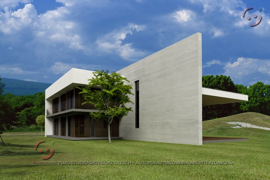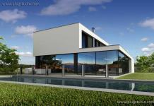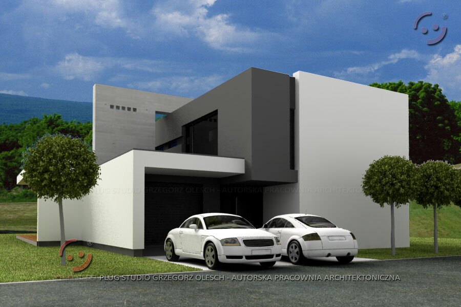 Jeden z projektów serii EVO. Bardzo odważna bryła budynku buduje wizerunek właściciela. Od frontu niedostępny i ascetyczny w formie. W środku duża otwarta na ogród przestrzeń dzienna. Możliwa jest wersja z garażem na 2 stanowiska jak i wersja lustrzana.