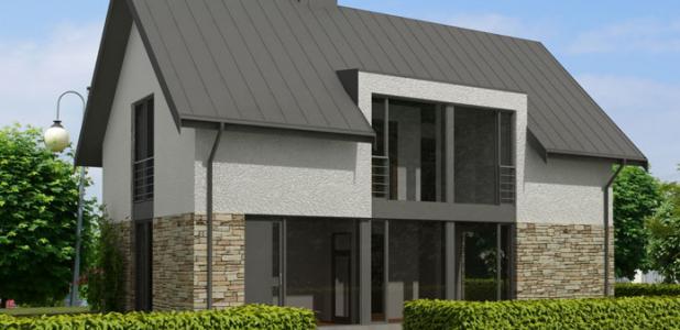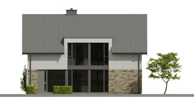 Jest to jeden z budynków o bardzo współczesnej formie i niezmiernie dobrych parametrach cieplnych. Zaplanowaliśmy go z myślą o młodych inwestorach potrzebujących co niemiara przystępnej przestrzeni w strefie dziennej na parterze. Na piętrze mieszczą się trzy sypialnie jedna rozległa i dwie mniejsze. Duża sypialnia zawiera odrębną przestronną łazienkę. Ogromne okna z salonu na ogród nadają efekt ogromnej przestrzeni i swobody. Na całej szerokości obiektu zaplanowano pokój dzienny z otwartą kuchnią i jadalnią.