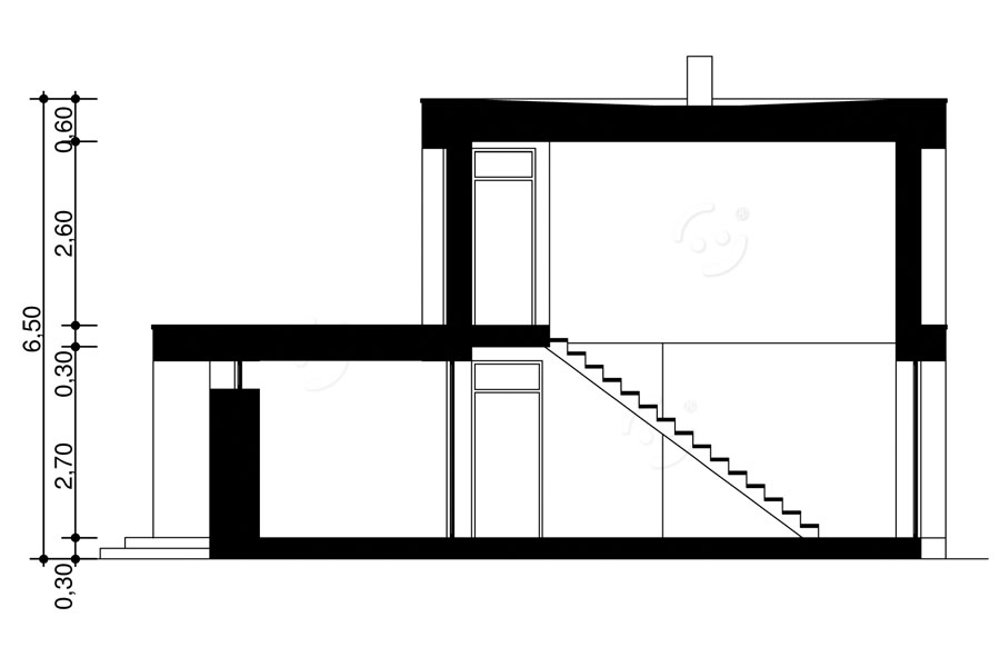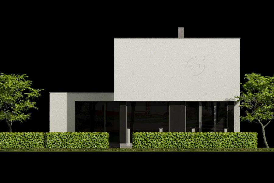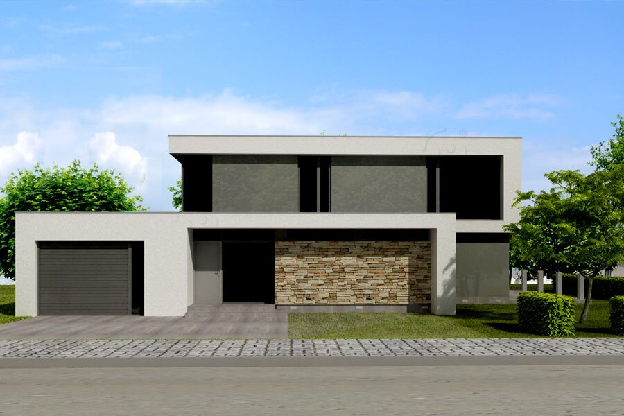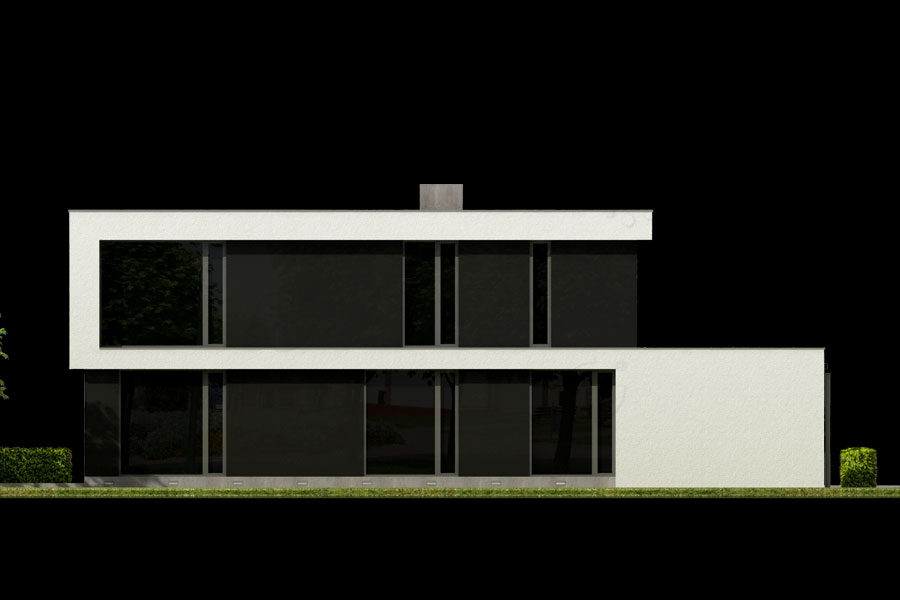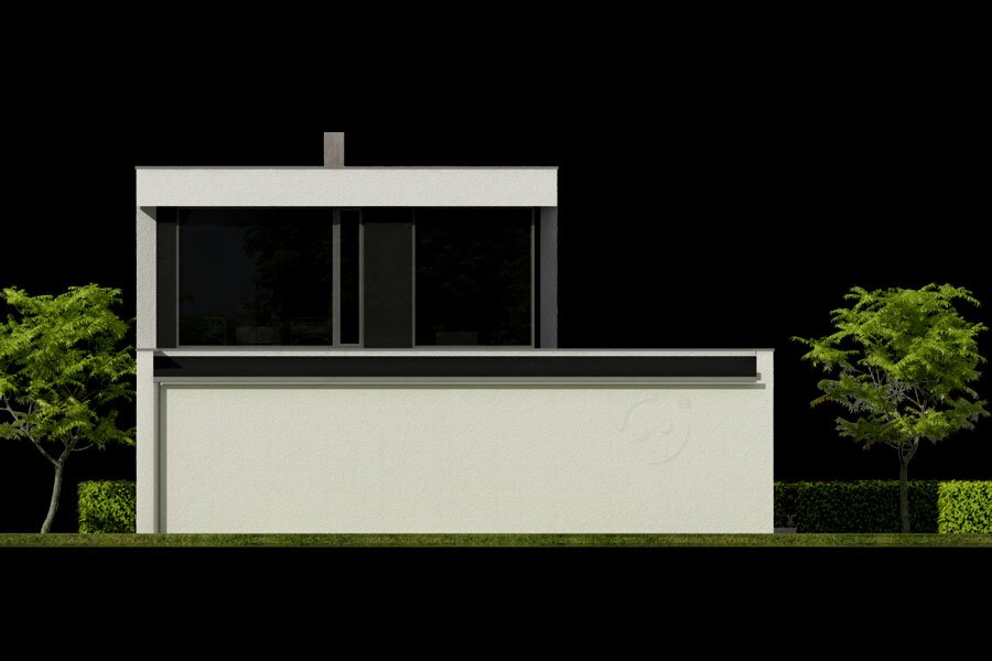 Dom dwukondygnacyjny z garażem oraz pomieszczeniem gospodarczym, w zabudowie wolnostojącej, przeznaczony dla 4-5 osobowej rodziny. Część ogólnodostępna obejmuje pokój dzienny oraz przestrzenną kuchnię połączoną z jadalnią W części prywatnej na piętrze znajdują się 3 sypialnie oraz dwie łazienki ogólnodostępne. W strefie wejściowej znajduje się obszerny przedsionek oraz WC oraz gabinet z niezależnym wejściem, dostępny również z salonu.