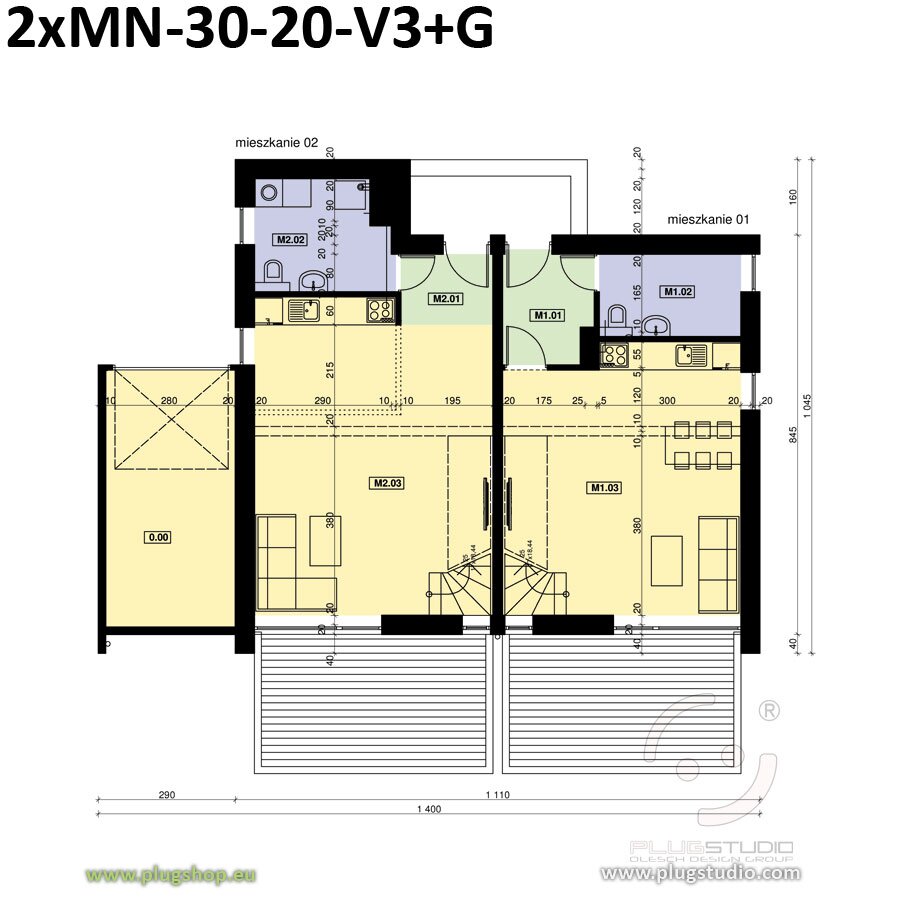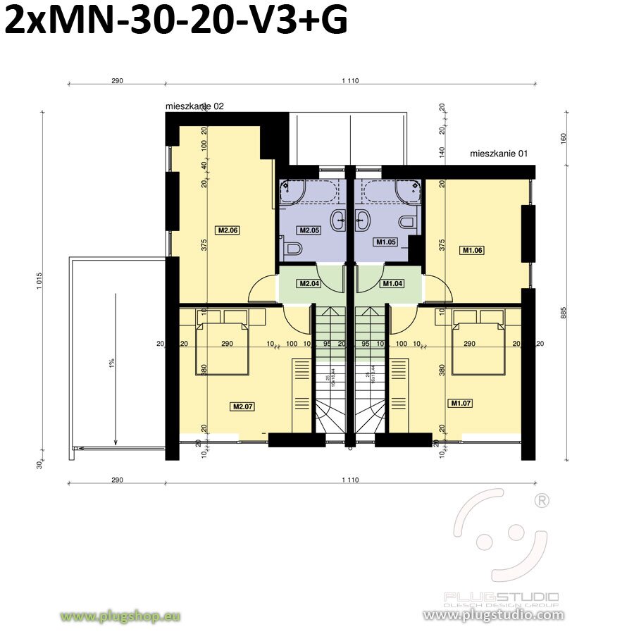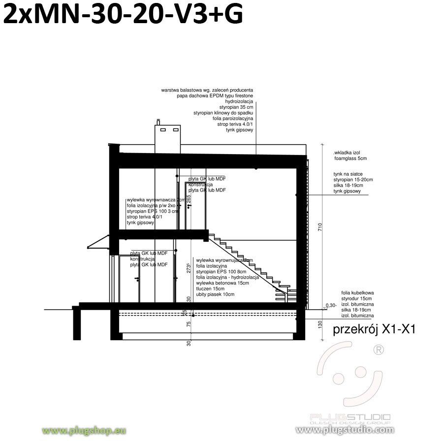 PS-MN-2x30-20-V3 projekt katalogowy - dom bizniak ECO nowoczesny płaski dach