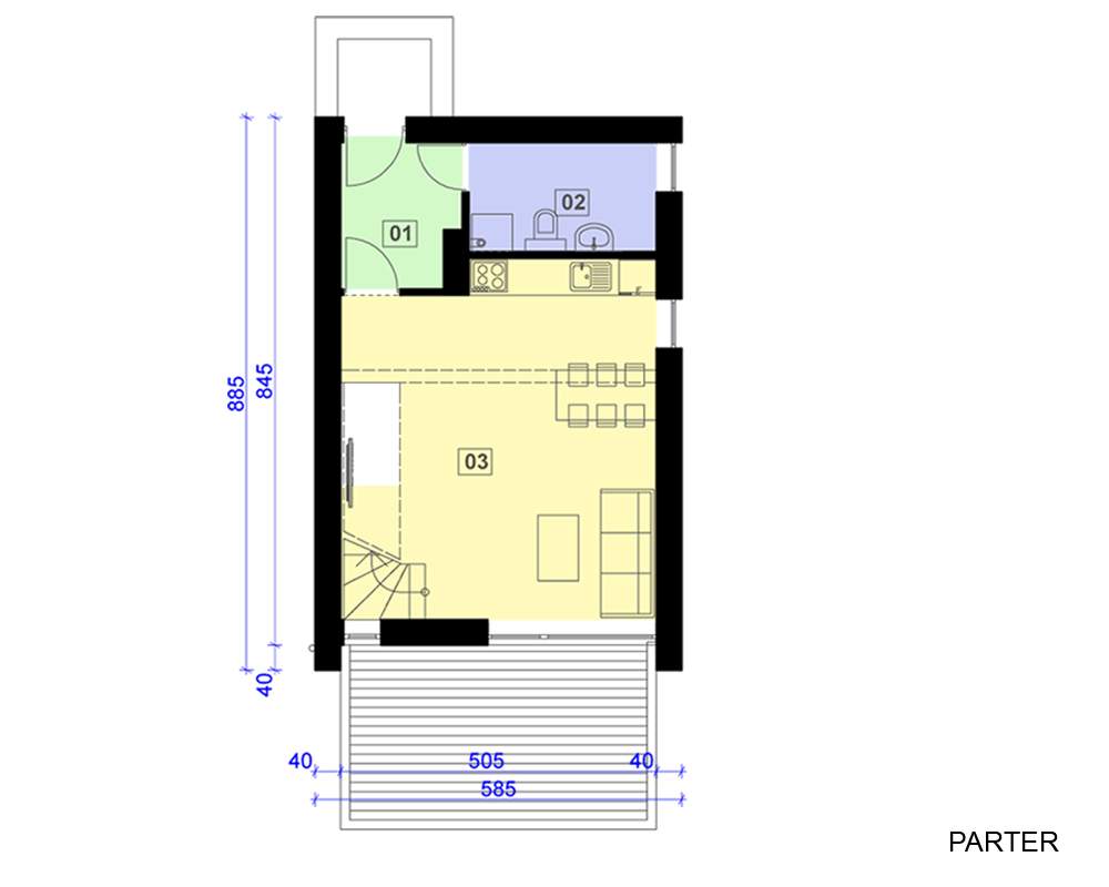 Jeden z projektów bazowych dla serii bliźniaków MN-2x30-20. Niewielki budynek o dwóch kondygnacjach, przeznaczony dla rodziny 2+1, 2+2. Cechuje go prosta i nowoczesna bryła oraz funkcjonalne wnętrze. autor: Grzegorz Olesch, Plug Studio Wizualizacje: Rzuty: