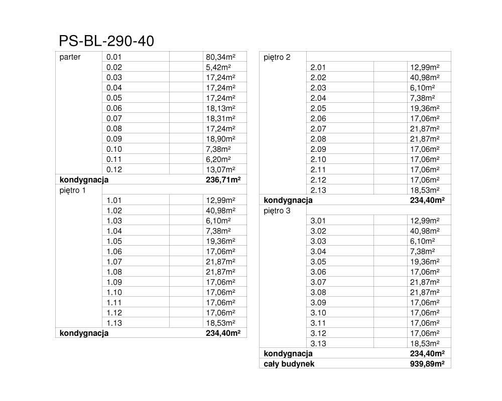 PS-BL-290-40 NOWOCZESNY ENERGOOSZCZĘDNY BIUROWIEC HOTEL PROJEKT KARTY PODSTAWOWE
