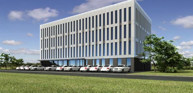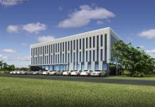 Obiekt usługowy o konstrukcji słupowo-płytowej ocieplony 30 cm izolacji.