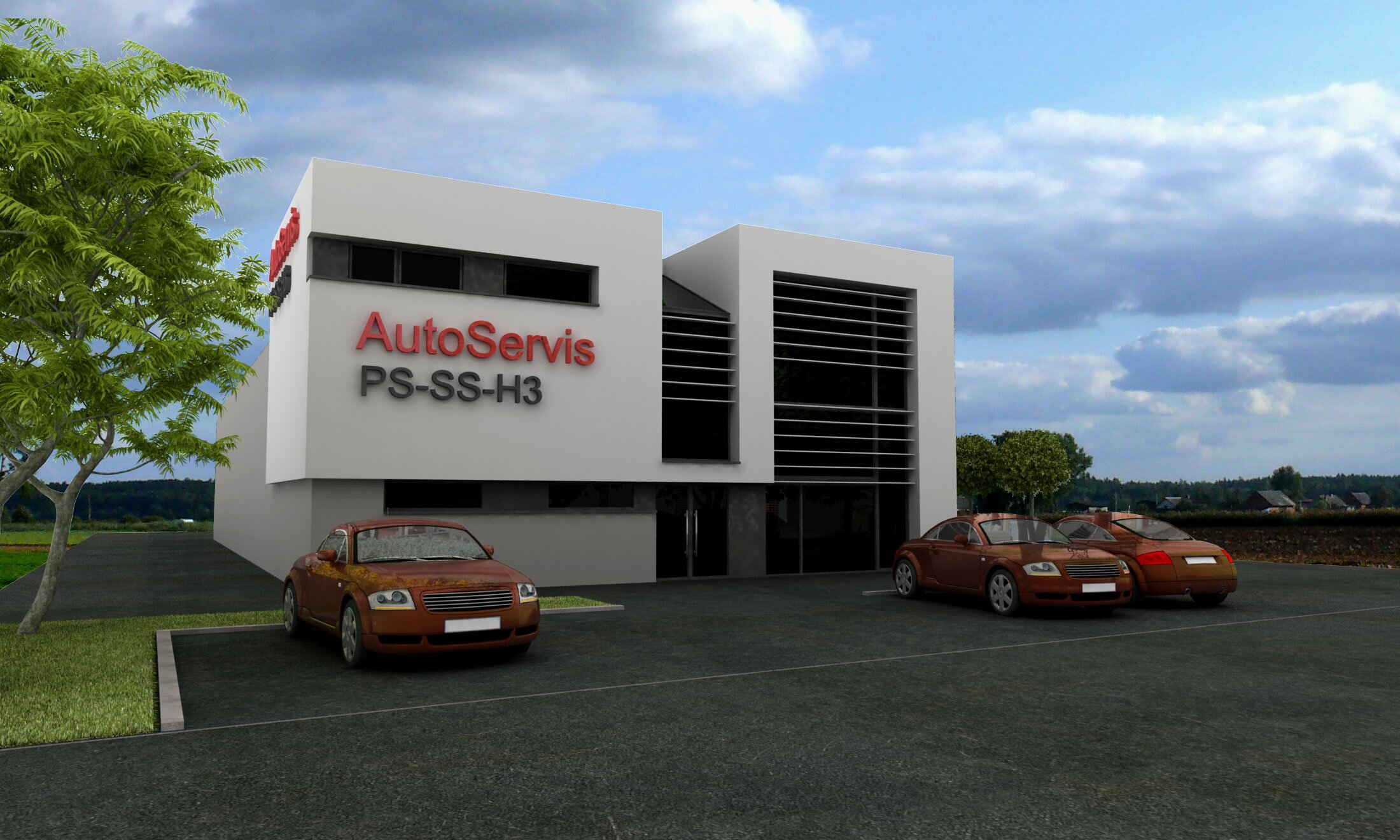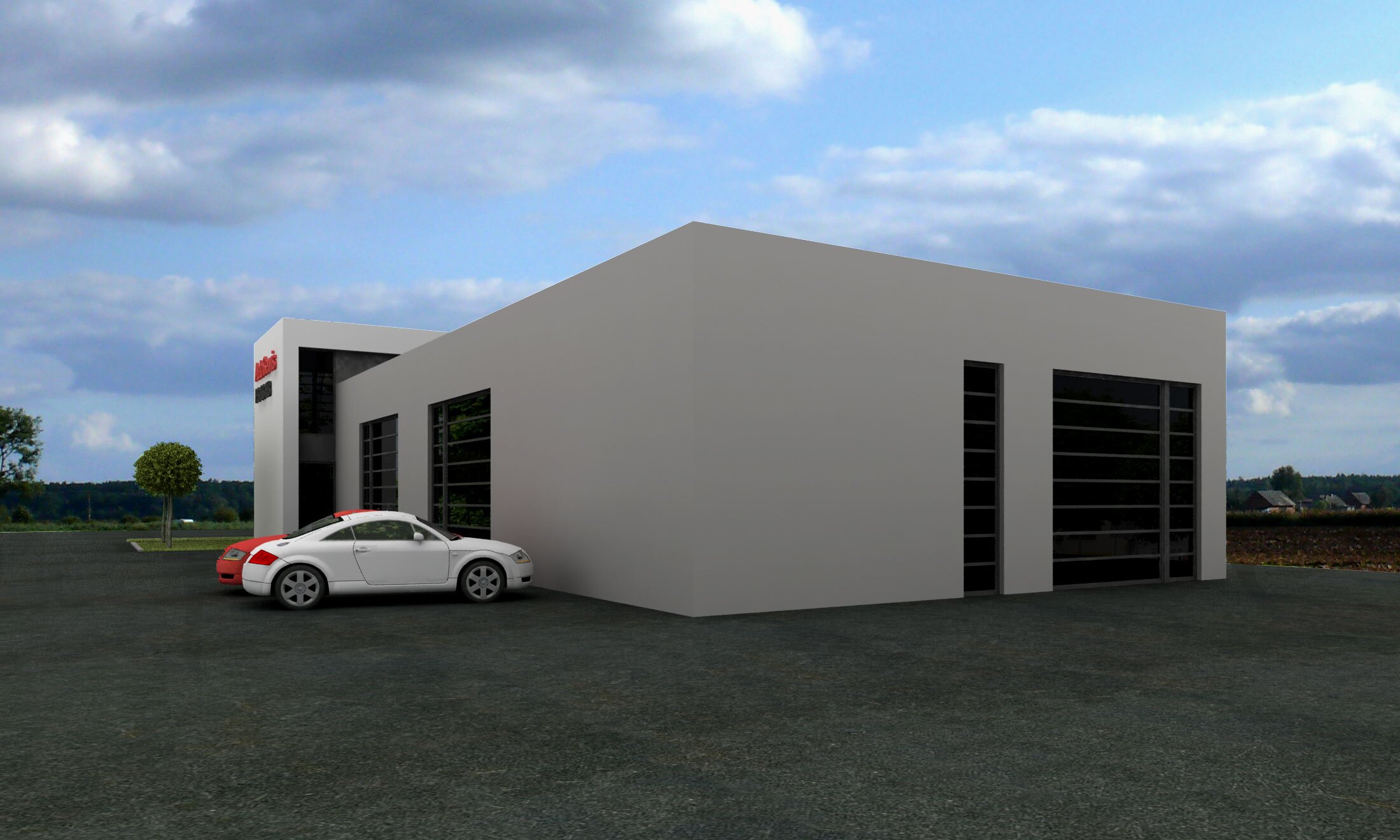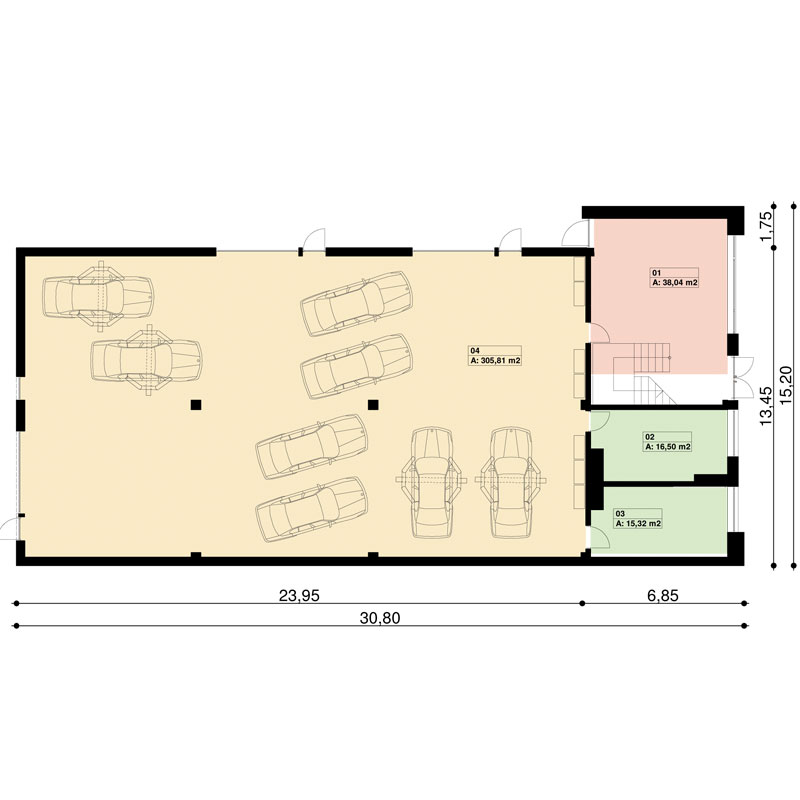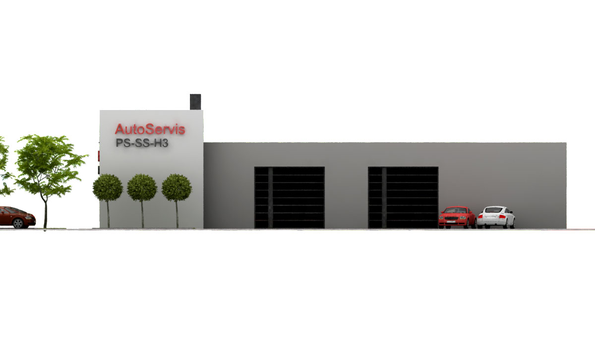 Auto serwis na 6-10 stanowisk oraz część mieszkalno-usługowa. Budynek może również pełnić funcję sklepu lub magazynu. Wizualizacje: Rzuty: