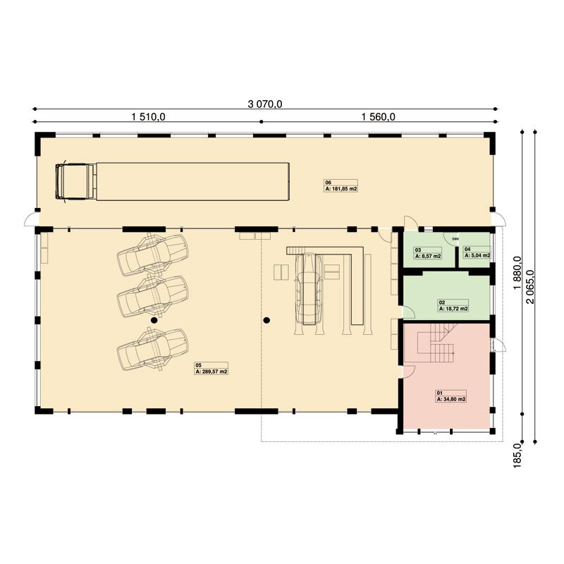 Na parterze budynku znajduje się warsztat samochodowy wraz z pomieszczeniami: biurowym, socjalnym, sanitarnym i magazynowym.