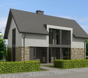 Projekt nowoczesnego domu jednorodzinnego ze spadzistym dachem.