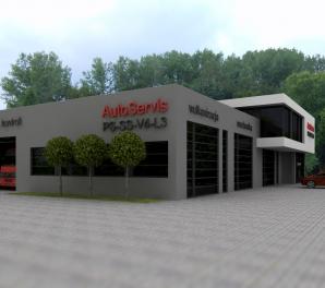 Auto serwis na 6-10 stanowisk oraz część mieszkalno-usługowa.