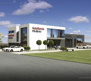 Auto serwis na 4-6 stanowisk oraz część mieszkalno-usługowa.