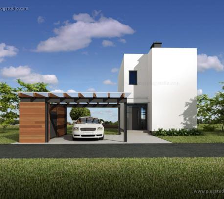 Dom dwukondygnacyjny z garażem oraz pomieszczeniem gospodarczym, w zabudowie wolnostojącej, przeznaczony dla 4-5 osobowej rodziny. Część ogólnodostępna obejmuje pokój dzienny oraz przestrzenną kuchnię połączoną z jadalnią W części prywatnej na piętrze znajdują się 3 sypialnie oraz dwie łazienki ogólnodostępne. W strefie wejściowej znajduje się obszerny przedsionek oraz WC oraz gabinet z niezależnym wejściem, dostępny również z salonu.