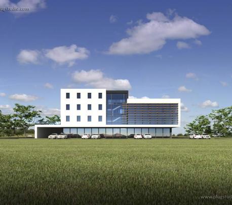 Projekt nowoczesnego hotelu serii DH. Wewnątrz przestrzeń, którą można podzielić na wiele sposobów. W zależności od potrzeb klienta można wydzielić pomieszczenia o różnej wielkości. Budynek posiada opcję garażu podziemnego. Dostępne inne wersje, różniące się elewacją oraz wysokością i szarokością budynków.