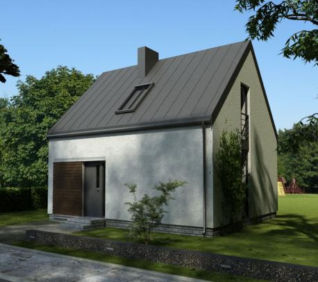 Mały, bardzo funkcjonalny i oszczędny dom parterowy z poddaszem użytkowym. Przeznaczony dla 2-4-osobowej rodziny. Parter to salon z kuchnią oraz łazienka. W salonie znajduje się kominek. Na poddaszu znajdują się dwie sypialnie.