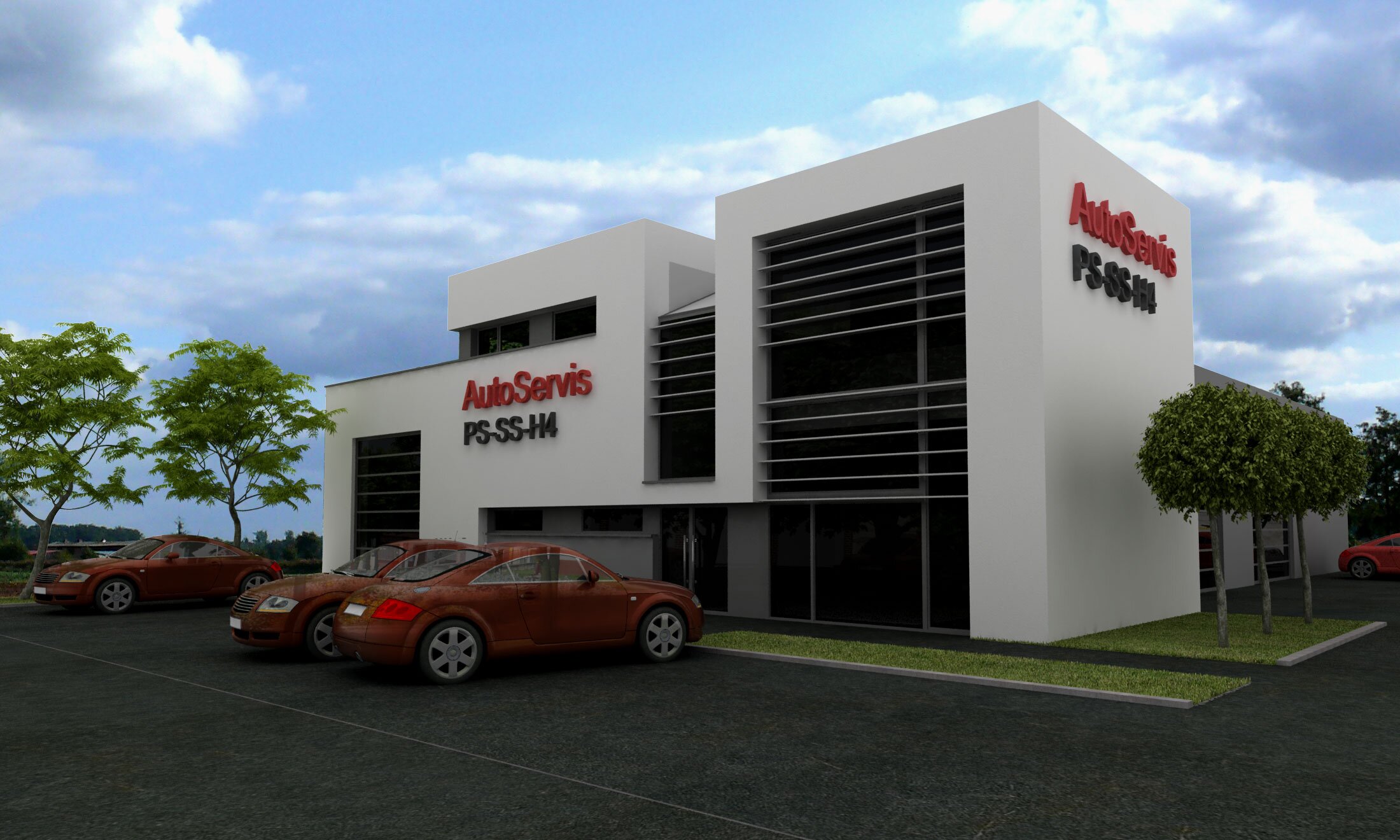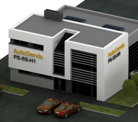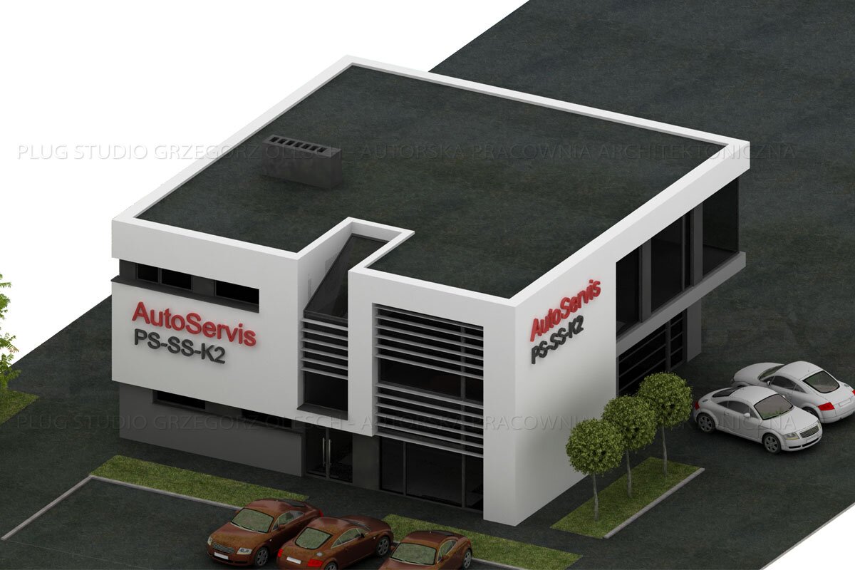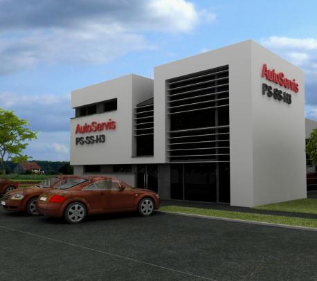 Auto serwis na 4-6 stanowisk oraz część mieszkalno-usługowa.