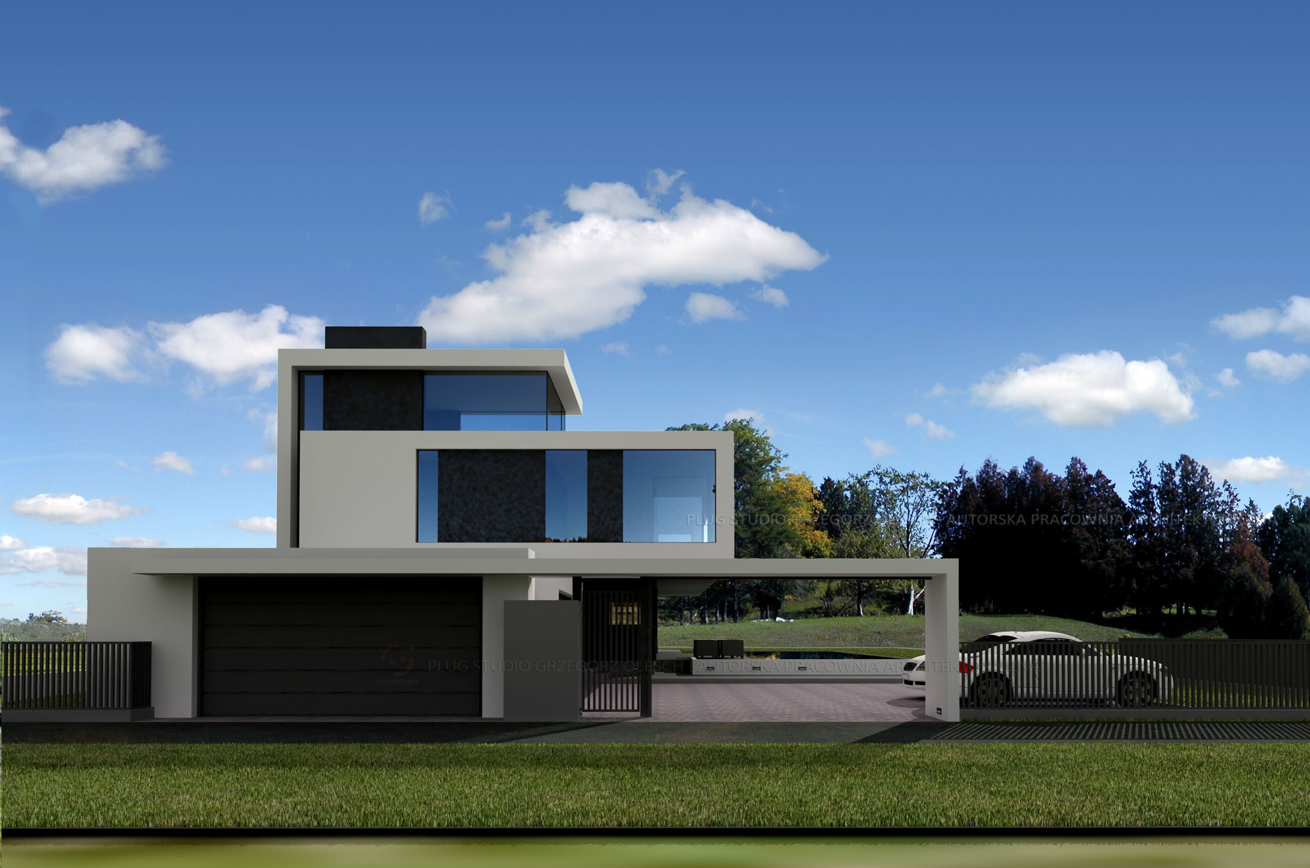 Projekt nowoczesnego domu jednorodzinnego ze spadzistym dachem.