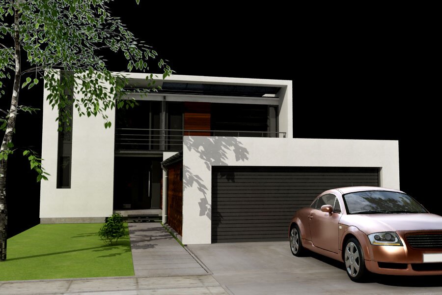 Projekt domu jednorodzinnego w zabudowie szeregowej lub wolnostojącej na wąską działkę.