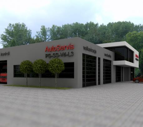 Auto serwis na 6-10 stanowisk oraz duża część mieszkalno-usługowa.
