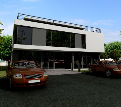 Gotowy projekt budynku usługowego - biurowego, do dowolnej adaptacji na odpowiednią funkcję w zależności od potrzeb klienta. Na parterze znajduje się jednoprzestrzenne pomieszczenie, oraz segment sanitarno - socjalny oraz komunikacja na piętro. System konstrukcyjny pozwala na dowolny podział pomieszczeń. Budynek idealnie nadaje się do zabudowy w aglomeracji miejskiej, jak również na obrzeżach miast, przy halach fabrycznych. Dostępne inne wersje budynku pomniejszona o jedno piętro a także wersje mniejsze, większe, z garażem oraz możliwością dostawienia do istniejących hal fabrycznych, produkcyjnych, magazynowych.