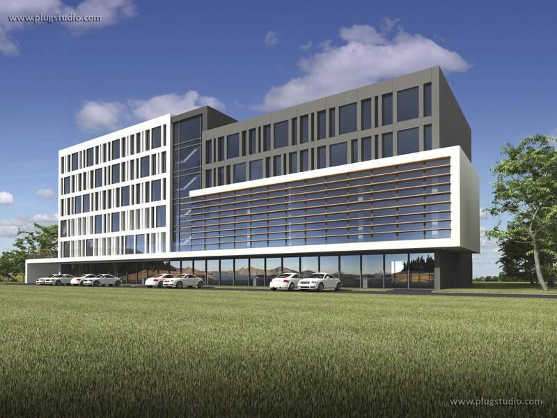 Projekt nowoczesnego hotelu serii DH. Wewnątrz przestrzeń, którą można podzielić na wiele sposobów. W zależności od potrzeb klienta można wydzielić pomieszczenia o różnej wielkości. Budynek posiada opcję garażu podziemnego. Dostępne inne wersje, różniące się elewacją oraz wysokością i szarokością budynków.
