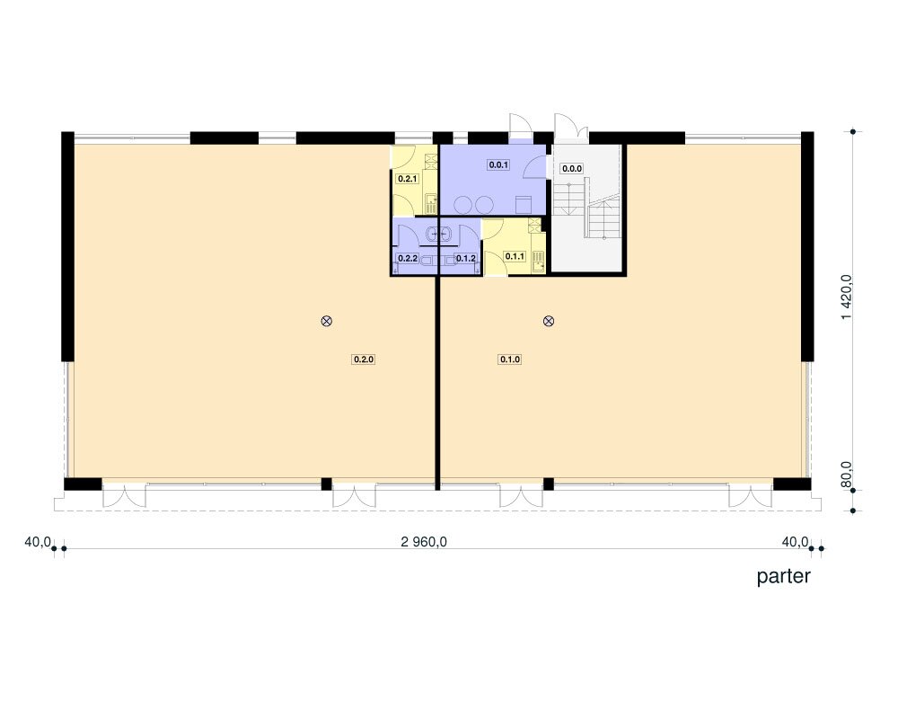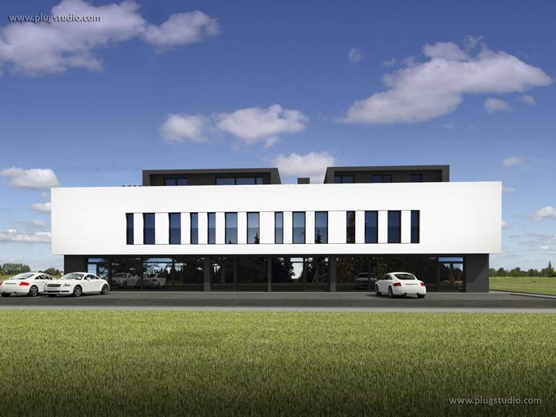 Projekt nowoczesnego budynku wielorodzinnego. Na parterze zaprojektowano część usługową, natomiast na piętrze i poddaszu - mieszkania. Mieszkania na piętrze mają od 40 do 60m2 i są zaprojektowane w sposób pozwalający na ich dowolny podział. Natomaist na poddaszu przewidziane są dwa większe mieszkania po 77m2 i 110 m2.