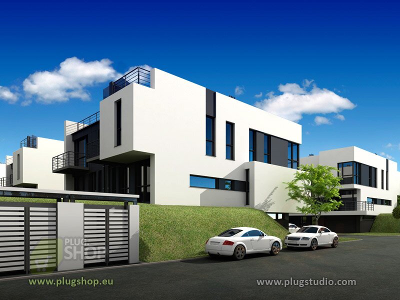 DEV-V1-C+D budynek typu bliźniak, 4 mieszkania eco nowoczesny płaski dach