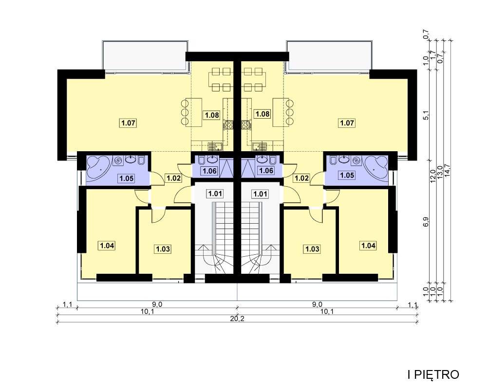 Projekt typowy przeznaczony głównie dla deweloperów. Jeden z serii budynków DEV. Budynek o prostej i nowoczesnej formie z funkcjonalnym i dobrze rozplanowanym wnętrzem. Bryła budynku pozwala na modyfikacje elewacji, tak że budynki łącząc się ze sobą tworzą spójną całość architektoniczną. Dysponujemy serią kompleksowych rozwiązań tego typu. Jesteśmy w stanie dopasować odpowiednie rozwiązanie pod względem wielkości oraz orientacji względem stron świata dla każdej inwestycji.