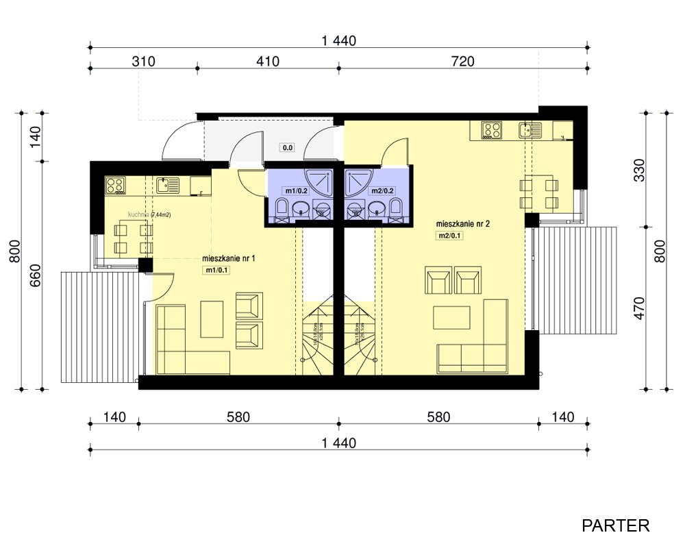 Budynek stanowi zewnętrzny moduł w zabudowie szeregowej serii PS-LO. Dwa mieszkania 92,13m2 i 99,44m2. To oferta dla deweloperów pozwalająca na dostosowanie projektu do programu inwestycji. Zainteresowanych prosimy o kontakt telefoniczny. Projekt wyłącznie na zamówienie indywidualne.