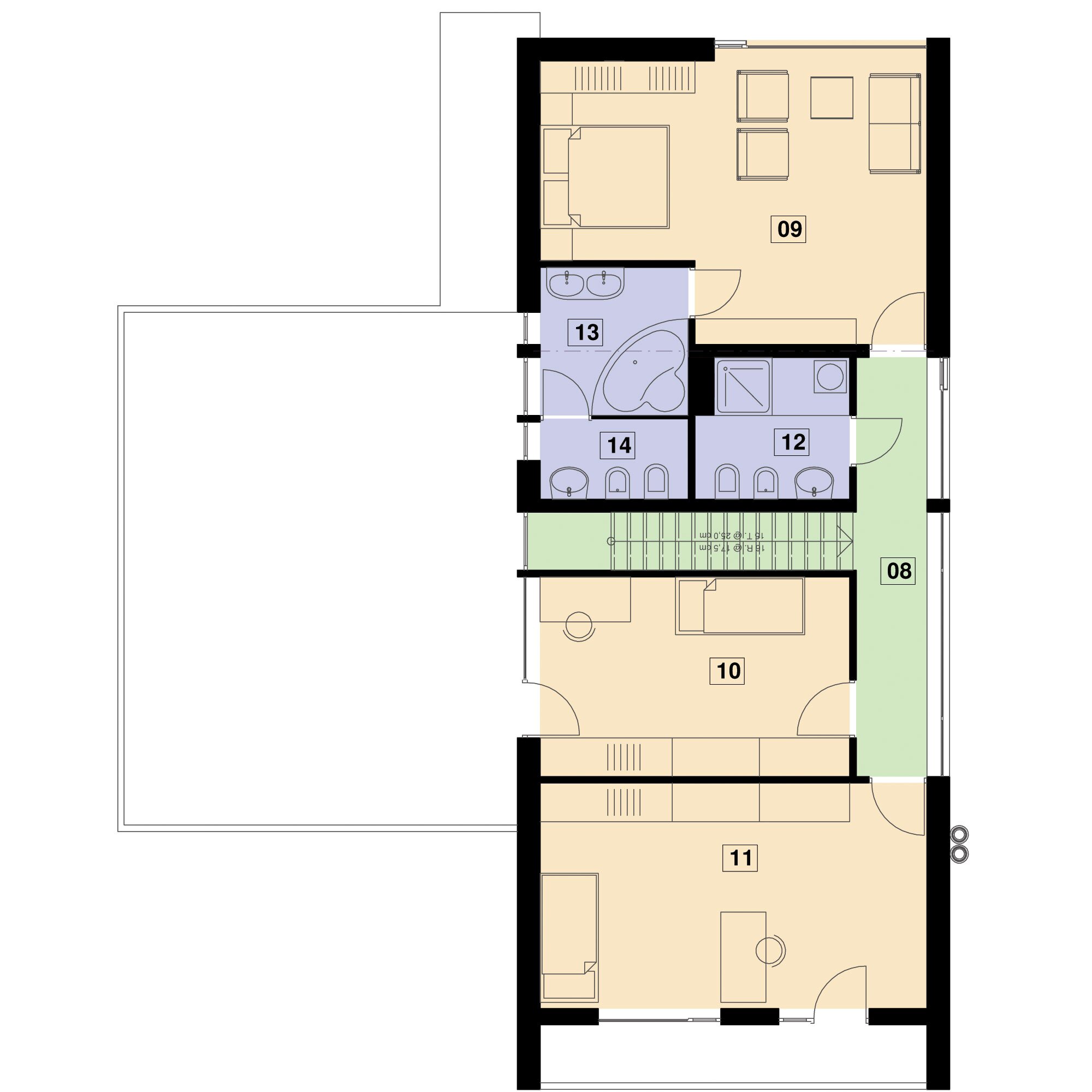 Budynek w części mieszkalnej 168 m2 + garaż 22 lub 36 m2.