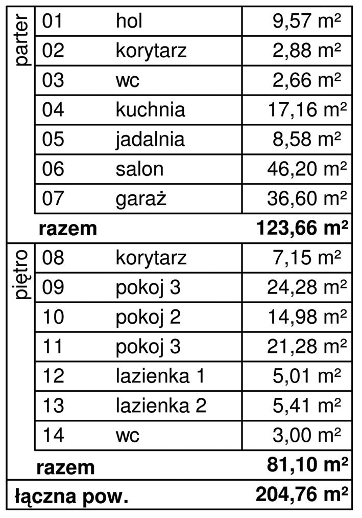 powierzchnia użytkowa: 204,76 m2