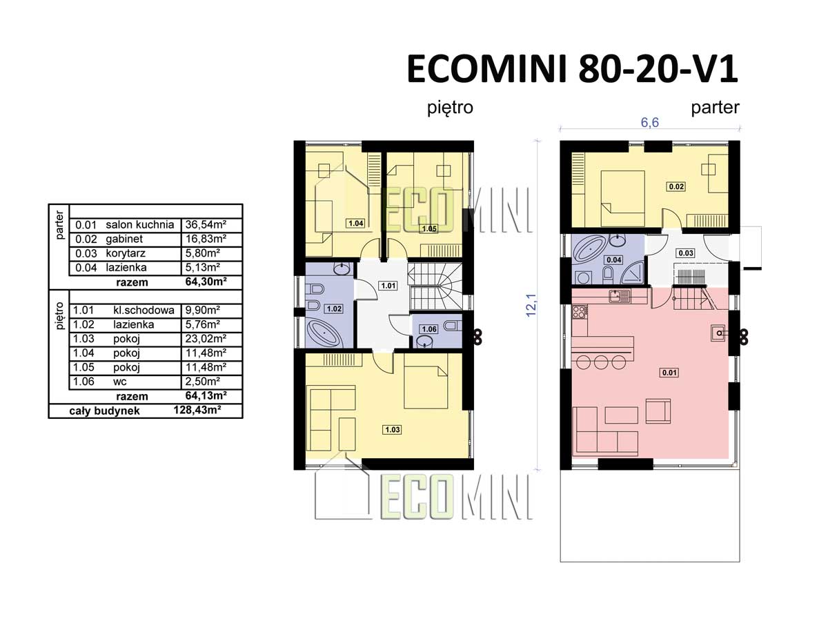 Budynek dostępny jest w różnych wersjach wykończenia oraz układu funkcjonalnego w środku.