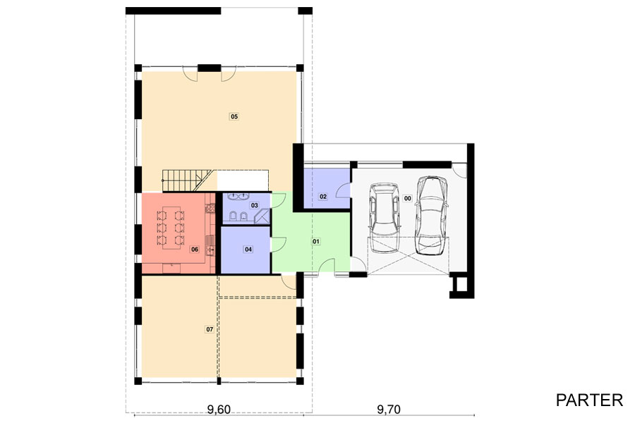 Projekt katalogowy energooszczędnego domu jednorodzinnego. Do wyboru 2-4 stanowiska w garażu. Wizualizacje: Rzuty: