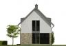 Jest to jeden z budynków o bardzo współczesnej formie i niezmiernie dobrych parametrach cieplnych. Zaplanowaliśmy go z myślą o młodych inwestorach potrzebujących co niemiara przystępnej przestrzeni w strefie dziennej na parterze. Na piętrze mieszczą się trzy sypialnie jedna rozległa i dwie mniejsze. Duża sypialnia zawiera odrębną przestronną łazienkę. Ogromne okna z salonu na ogród nadają efekt ogromnej przestrzeni i swobody. Na całej szerokości obiektu zaplanowano pokój dzienny z otwartą kuchnią i jadalnią.