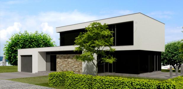 Dom dwukondygnacyjny z garażem oraz pomieszczeniem gospodarczym, w zabudowie wolnostojącej, przeznaczony dla 4-5 osobowej rodziny. Część ogólnodostępna obejmuje pokój dzienny oraz przestrzenną kuchnię połączoną z jadalnią W części prywatnej na piętrze znajdują się 3 sypialnie oraz dwie łazienki ogólnodostępne. W strefie wejściowej znajduje się obszerny przedsionek oraz WC oraz gabinet z niezależnym wejściem, dostępny również z salonu.