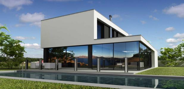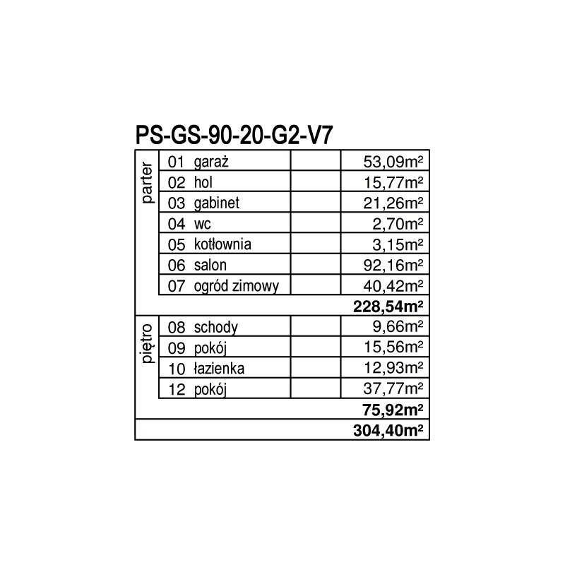 PS-GS-90-20-G2-V7 to jeden z budynków o bardzo nowoczesnej formie i bardzo dobrych parametrach cieplnych oraz tani w budowie. Zaprojektowaliśmy go z myślą o młodych ludziach potrzebujących dużo otwartej przestrzeni w części dziennej na parterze. Na piętrze znajdują się trzy sypialnie jedna duża i dwie mniejsze. Duża sypialnia posiada odrębną przestronną łazienkę. Budynek może mieć pojedynczy (-G1), podwójny (-G2) lub na 4 stanowiska (-G4) garaż. Przed Garażem zaprojektowane zadaszenie osłaniające wejście do budynku. Ogromne szyby z salonu na ogród zimowy dają efekt dużej przestrzeni i swobody. Ogród zimowy może być otwierany na całej szerokości. Na całej szerokości obiektu usytuowano pokój dzienny z otwartą kuchnią i jadalnią. Budynek ma bardzo dobre parametry energetyczne uzyskane przy bardzo niskich kosztach budowy Uk 0,11. Budynek jest tak zaprojektowany aby strefa całoroczna mogła się zamknąć w obrębie środkowej dwukondygnacyjnej części. Takie rozwiązanie pozwala zmniejszyć przestrzeń użytkową (ogrzewaną do ok 160m2) w czasie grzewczym. Nie jest to wymóg, a jedynie możliwość pozwalający zwiększyć energooszczędność budynku. Ściany w systemie pustaka ceramicznego lub komórkowego, ocieplenie 30 cm styropianem lub wełną mineralną, dach płaski z membraną Firestone.