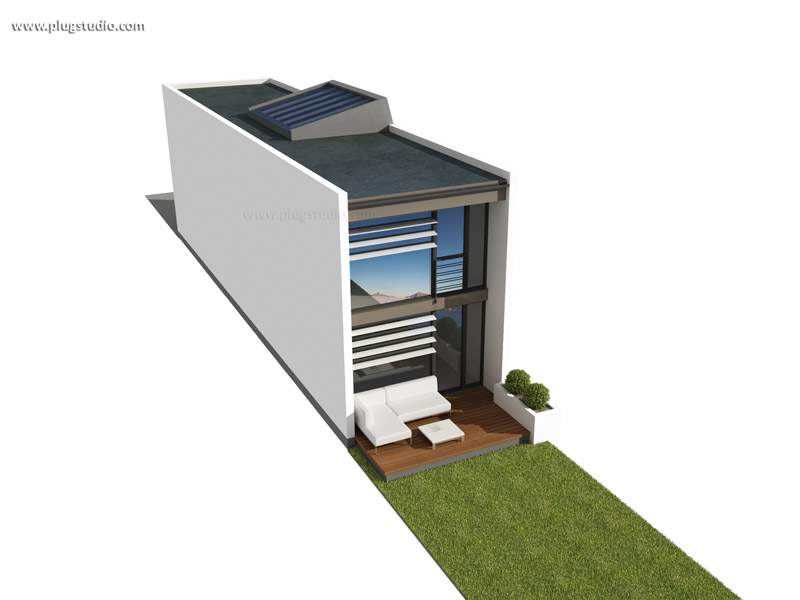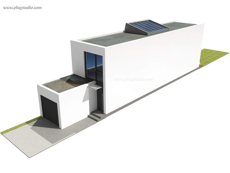 Moduł w zabudowie szeregowej serii LONGER z garażem. Minimalna szerokość działki to zaledwie 4.5 m, dzięki czemu idealnie sprawdzi się na działkach długich i wąskich. Projekt pozwala na uzyskanie bardzo wysokiej intensywności zabudowy. Dysponujemy całym systemem tego typu projektów dla szerokości działek 4.0-12.0m i głębokości 8.0-26.0m.