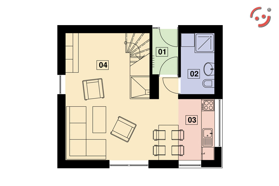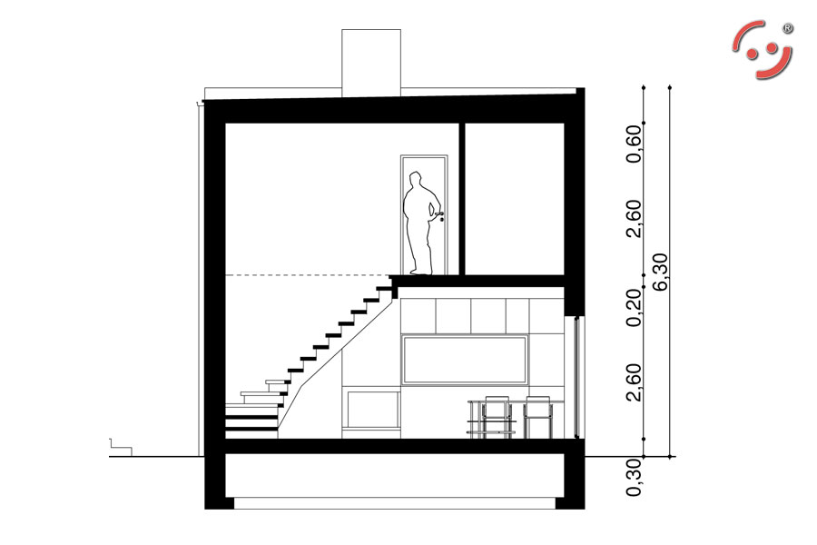 Projekt domu PS-OO-40-20 to idealna propozycja dla osób posiadających wąską działkę, ponieważ zajmuje niewiele miejsca. Dom charakteryzuje się prostą, a zarazem nowoczesną bryłą. Mimo niewielkiego metrażu, wnętrze zaprojektowano w sposób wygodny dla użytkowania. Na parterze znajduje się otwarta kuchnia z salonem oraz łazienka i hol, natomiast na piętrze - dwa pokoje. Projekt jest idealnym rozwiązaniem dla niewielkich rodzin.