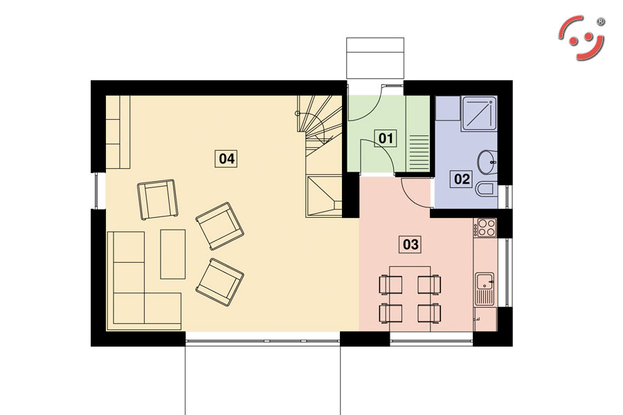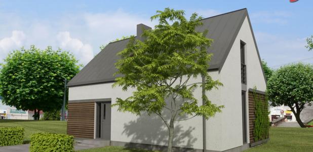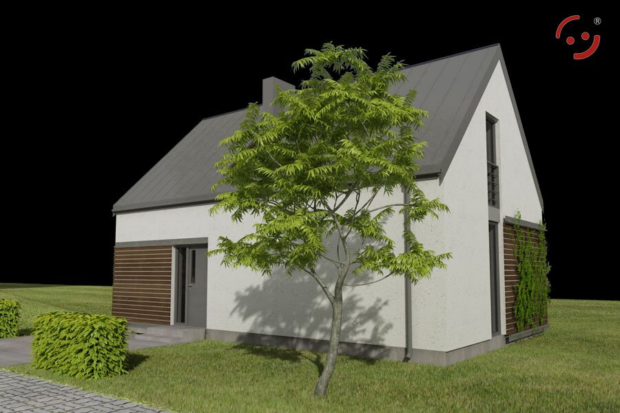 Mały, bardzo funkcjonalny i oszczędny dom parterowy z poddaszem użytkowym. Przeznaczony dla 2-4-osobowej rodziny. Parter to salon z kuchnią oraz łazienka. W salonie znajduje się kominek. Na poddaszu znajdują się dwie sypialnie. Wizualizacje: Rzuty: