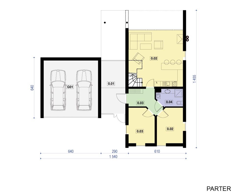 Dom parterowy lub piętrowy, możliwość wyboru wysokości budynku 8.30, 7.60 lub 6.20.