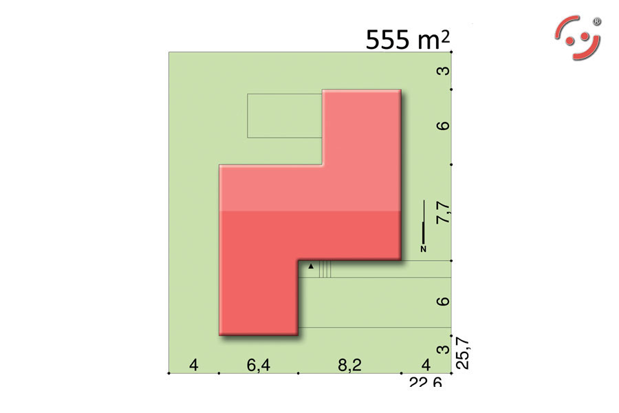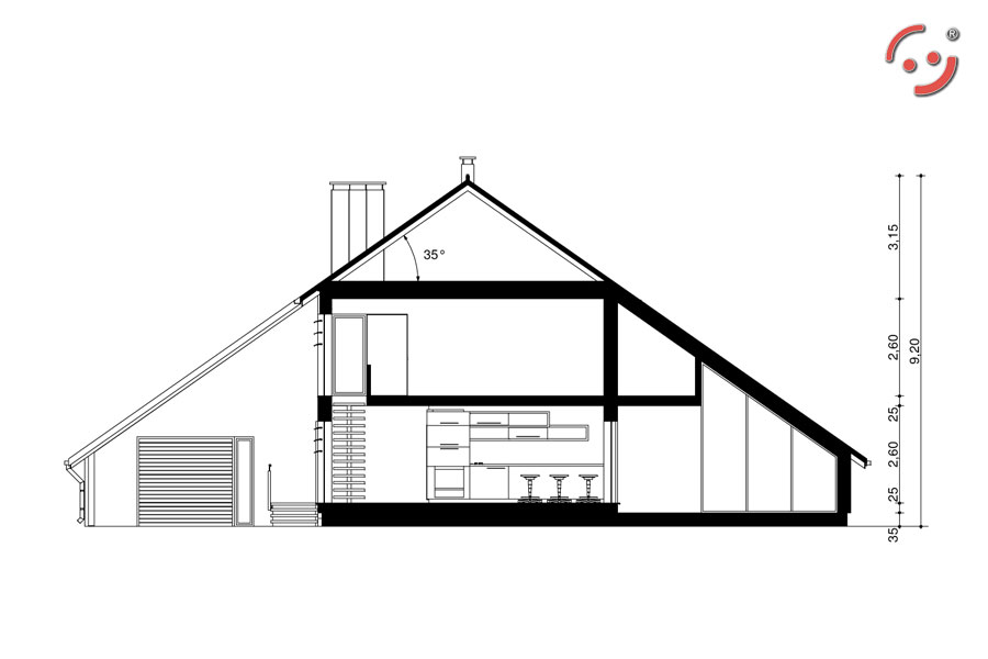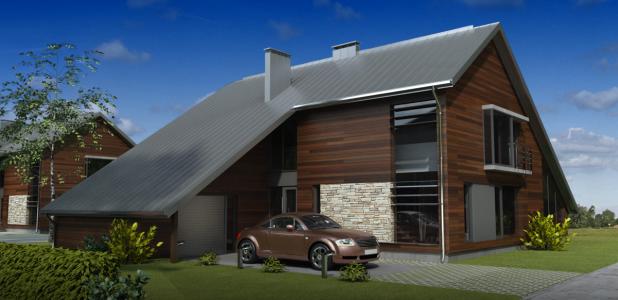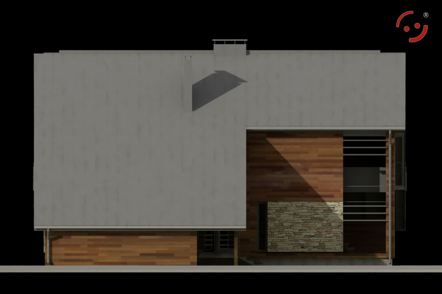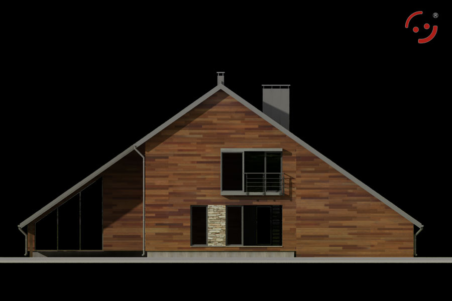 Projekt nowoczesnego domu jednorodzinnego ze spadzistym dachem.