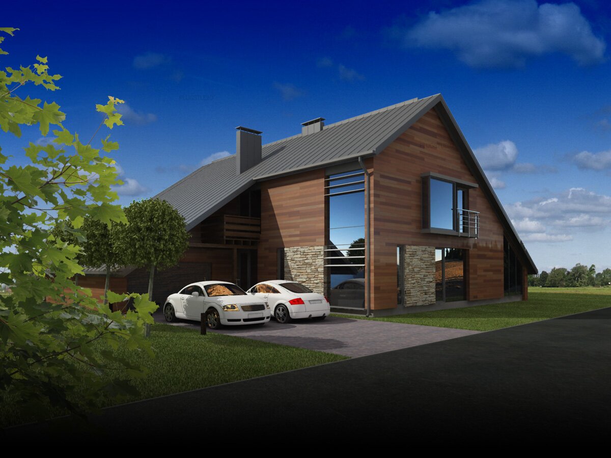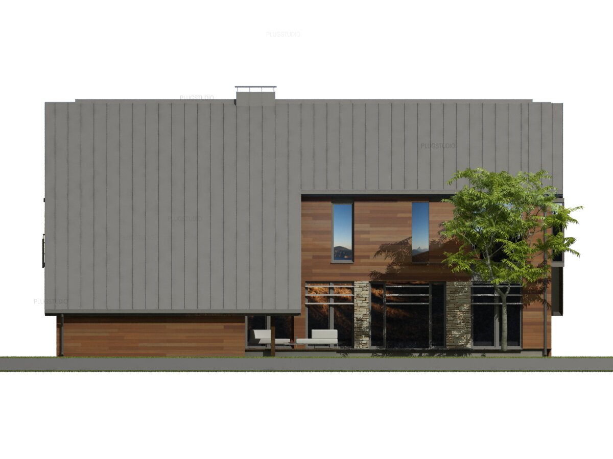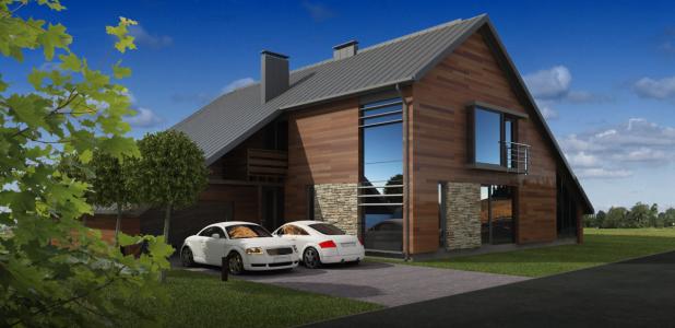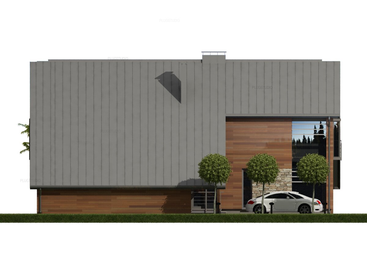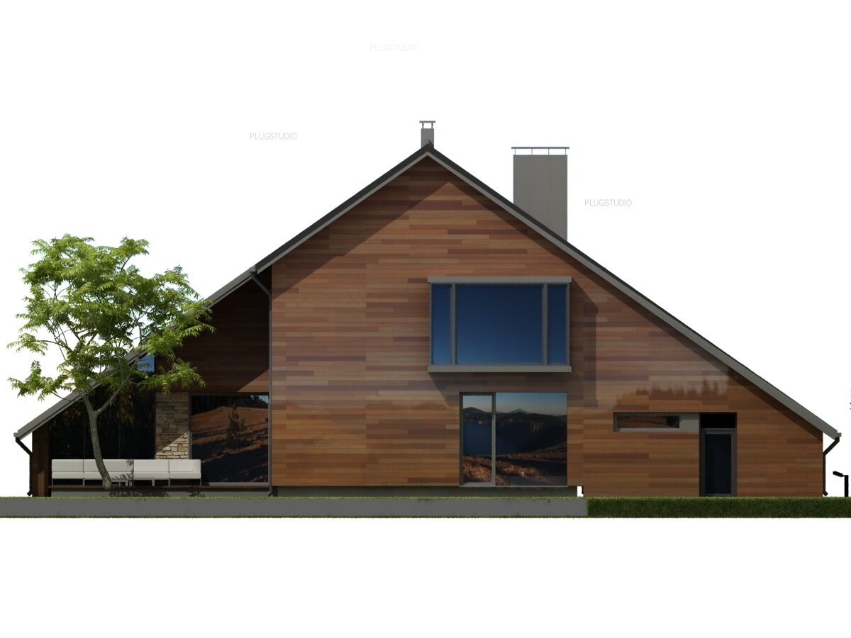Projekt nowoczesnego domu jednorodzinnego ze spadzistym dachem.
